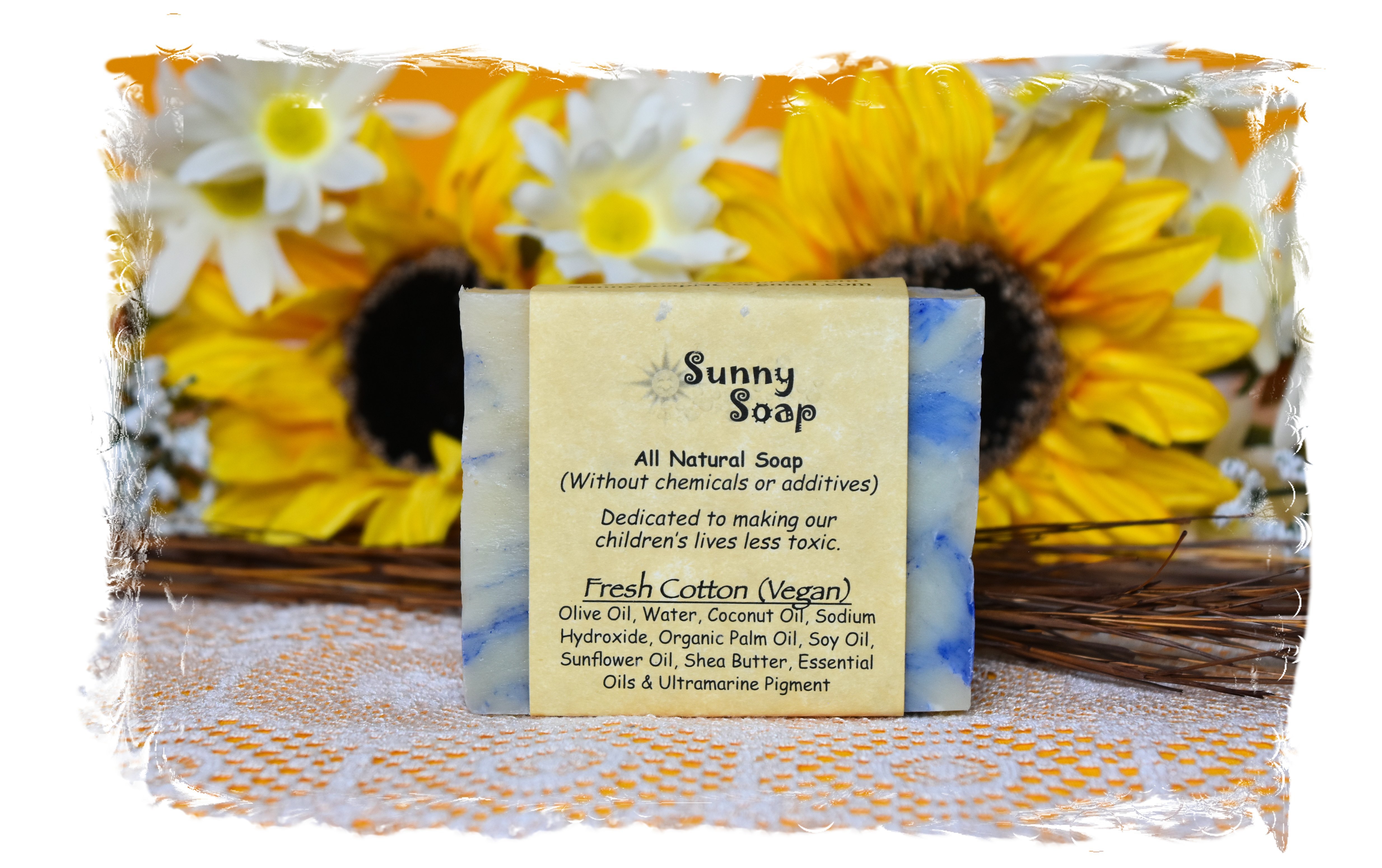 A clean scent of linen dried in the fresh air. Guaranteed to make any room in your home smell wonderful. (Also makes a great car air freshener! Will not melt!) It's unique color comes from the ultramarine pigment and is one of my most requested soaps!